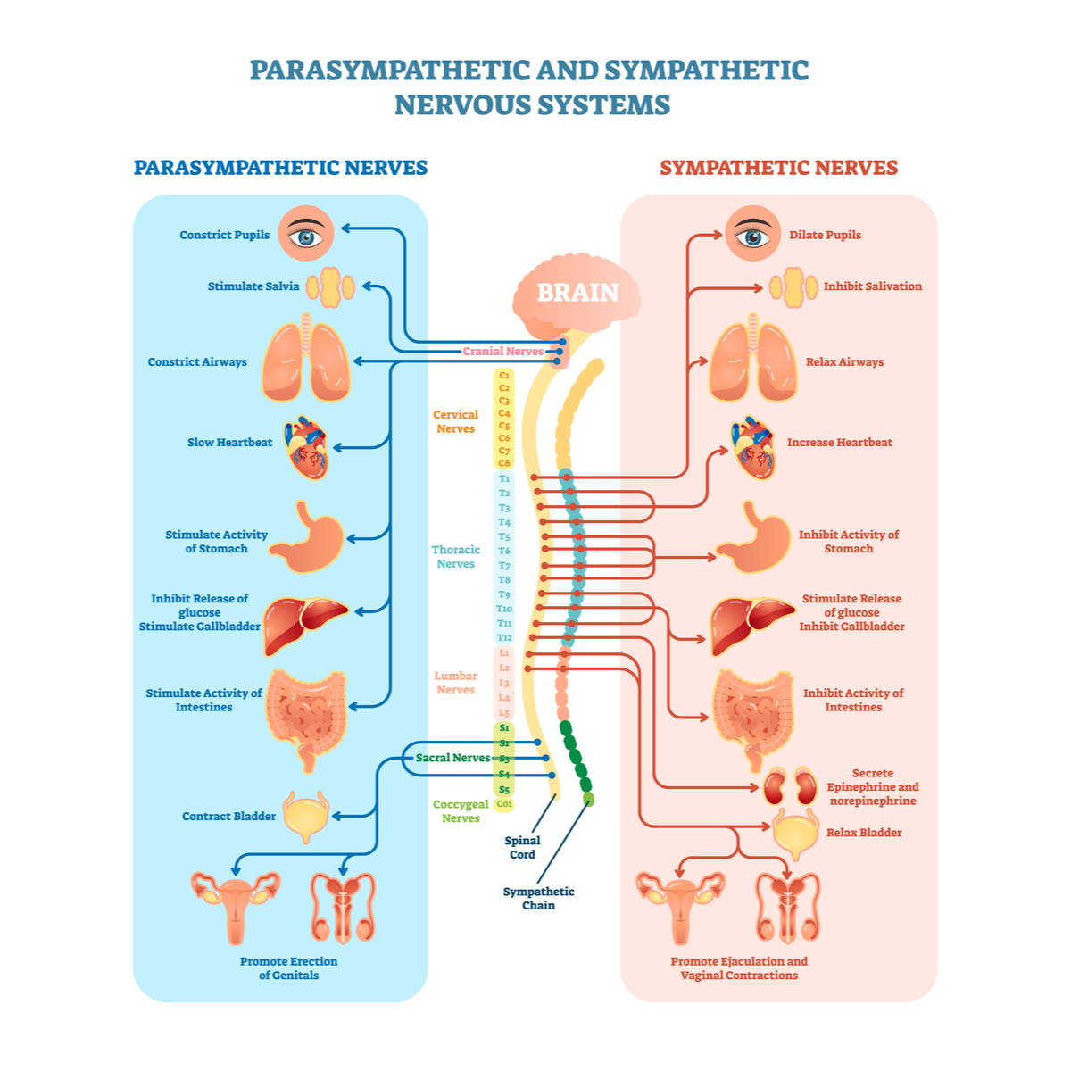 Instead, we should be spending 80% or more of our time with our Parasympathetic Nervous System (PSNS) switched on. What happens when the PSNS is switched on? Take a look:
